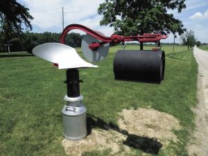 The plow mounts on a 2-in. dia. steel pin, which extends down into an 8-ft. section of an old light pole that’s set 5 ft. deep in the ground. A circle of lock bolts positioned around the pole can be adjusted to keep the plow’s angle level with the ground. If the mailbox ever gets clipped by a car or blasted by snow from a snowplow, the entire unit will spin around on the pin. So far the mailbox has taken direct shots from an aluminum baseball bat and a high speed pumpkin, and it has twice been turned around by snowplows with no damage whatsoever. The local idiots appear to have given up on it. (Tom Nelson, 4774 Wisner Hwy., Adrian, Mich. 49221 ph 517 282-2419)