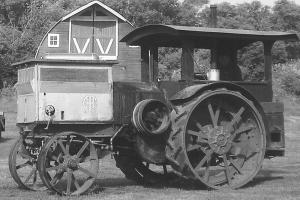 The 18-35 hp Titan had twin cylinders and a twin crank. A variable speed governor gave the operator a choice of 120 or 425 rpm’s. It had a centrifugal water pump and large water tank, and was started on gasoline and then switched to kerosene after it warmed up. It had a sliding gear-type transmission with friction clutch.