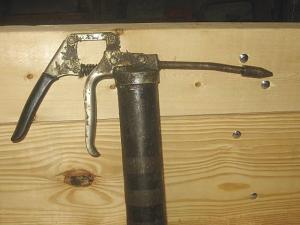 “I had several tips made up for my grease guns,” Rankin says. “The tip screws on the end of the grease gun and has a small hole about 1/8-in. dia. The hole in the hub doesn’t have to be exact; that’s why I tapered the tip. Put the point in the hole, put pressure on it and squeeze the grease gun. Grease until it comes out of the backside.”