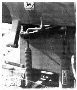 New tension adjuster lets you use a single crank to quickly and easily adjust bale tension springs on both sides of older model Deere square balers at the same time, eliminating the need to walk back and forth from one side of the baler to the other, says Carroll Spaulding, Hollis, N.H.