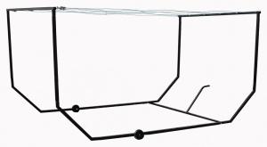 The unit measures 12 ft. long, 8 ft. wide and 6 ft. high and is made from powdercoated steel tubes that friction fit together. It rides on a pair of 6-in. hard rubber wheels and has a handle at one end, making the unit easy to move around. Six vinyl-coated metal lines are spaced evenly across the top, for a total of 72 ft. of dryer line.