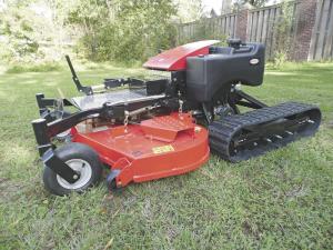 Summit markets smaller remote control mowers; however, when designing the 1,000-lb. TRX-60, the company made significant changes. Track placement to the rear of the wide deck allows it to operate alongside obstacles such as fences.