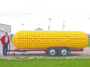 Who knew plastic milk jugs could be made up to look like corn kernels? The idea came to Pioneer seed dealer Bob Erickson when he was trying to figure out how to make a giant ear of corn to promote his business. About 1,000 milk jugs and lots of trial and error later he had a 16-ft. long ear of corn sitting in his Westby, Wis., yard.