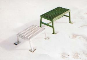“The top of the step is made from anti-skid serrated plank grating, which comes in different widths. It doesn’t matter if my shoes are dirty or oily, the grating will dig into the soles and clean everything off.”