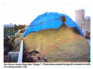 Silage Shaper Makes Self-Sealing Stacks CROP STORAGE Silos (50) 18-1-2 A pair of Wisconsin farmers say they got the idea for their innovative new silage "shaper" after seeing a portable airplane hangar at an air show. "Someone said it looked like half a 30-ft. silo and that got us thinking," say Dan and Mark Walder, Wittenberg, Wis., who went home and started working on a unit that they hoped would make it easier to stack silage on the ground or in bunker silos.