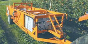 New York fruit producers Paul and Walter Wafler say that after nearly 12 years of work, their self-propelled Huron Picking Platform is ready for market. Powered by a small GX series Honda engine, it uses just 2 1/2 gals. of gas in 8 hrs. and the Waflers say “it’s quiet and has plenty of torque, even on sloping land.” Controls allow the platform to move automatically at a certain speed or it can also be operated manually. The Picking Platform hauls up to 10,000 lbs. and is designed for tree rows 11 to 13 ft. apart. Pickers stand on platforms to reach from 5 to 10 ft. on the lower platform and 7 to 12 1/2 ft. on the upper platform. The ground level pickers reach up to 7 ft. into the trees.