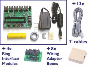 The host module sells for $79. A starter package includes the host module, ring module, battery and one handset for $149. This would allow a conversation between 2 wired points. However, up to 4 ringers at $12 each can be tied into that system. Low cost off-the-shelf phones can be used with the ringers.