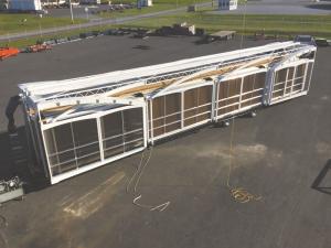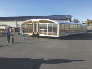 “The roof material is a 2-layer tarp. After the roof is strapped down, we inflate the roof between the layers to prevent condensation,” Ebersol says.