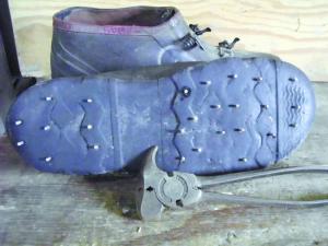 As the nails wear down I replace them with new ones. The boots shown in the photo are on their third set of cleats, and I avoid walking on cement to help keep them from wearing down. I got the idea from my growing up years in the 1950’s and 60’s, when it was still legal for Minnesotans to put studs on car tires. (John Lubinski, Plainview, Minn.; jjlubinski@yahoo.com)