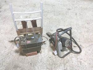 Allaway’s super drill’s big DC motor runs through a 43:1 gear reducer. The frame is made out of pieces of 1-in. pipe. The electronics include a 50A mini-ANL fuse and fuse holder, a reversing contactor (2 x DPST), a reversing switch to select direction by choosing which coil of the contactor to energize, and a push-button trigger switch.