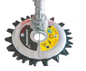 The first-of-its-kind attachment has 2 contra-rotating blades that snip the grass. The 18 over 15-tooth blade kit is driven by a 20:1 reduction ratio gearbox. An optional 28 over 24-tooth fine-cut kit is also available.
