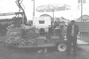 Cox built a 3-ft. wide by 5-ft. long hay rack, which holds about 100 bales, to go along with the baler and tractor. He also built a single-axle, oak-floored 12 by 8-ft. trailer to haul the model from show to show.