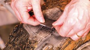 “This kit uses a thinner piece of rubber than our glue-on treads. It’s more pliable and bends with the tire but holds up to the air pressure inside the tire,” says Auble. “Other external ‘tire plug’ kits on the market can fix punctures between the lugs, but they can’t fix a puncture or a slice in the sidewall.”