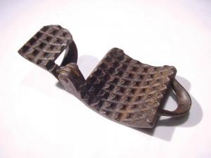 “I picked up one at an antique show years ago and was intrigued to learn more,” recalls Moffet. “I had no idea how many were made. They vary from homemade wooden types to patented cast iron and steel. Some are simple rings, and others are hinged, and still others have hand cranks.”