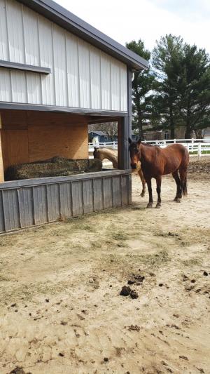 Van Wingerden converted a corner of their horse barn into a 2-sided feeding station. It replaces the last horse stall in the barn.