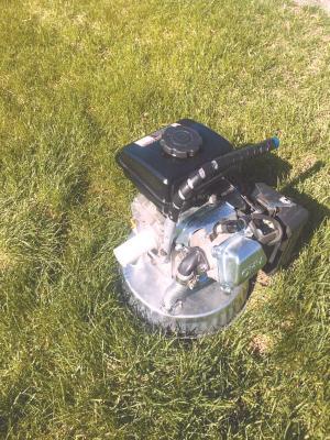 The “Predator Gopher Killer” comes with an insulated handle and uses a small 3 hp. 4-cycle gas engine mounted above an inverted 14-in. dia. steel pan, to kill rodents with carbon monoxide. You just set the pan on top of the gopher hole and start the engine to fill the pan with exhaust. The exhaust is delivered up to 300 ft. away into rodent dens and runways.