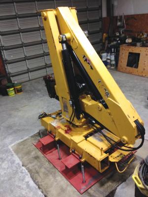 Garver fashioned an adapter and the base that went into the floor. A tow truck brought the crane inside the shop and set it on a 14-stud structure on 10-in. I-beams.