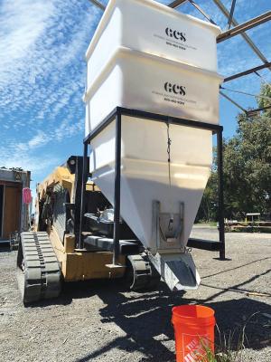 “From day one, my employees and I loved it,” he says. “It’s made of food grade poly and comes with a slotted metal frame for carrying it on the forks of a loader or skid steer.”