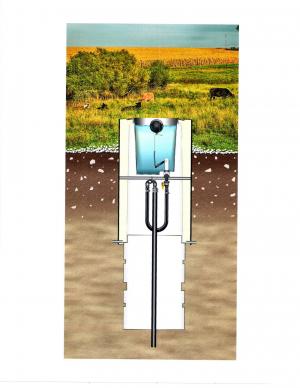 “It’s simple to install and requires no concrete, no outside heat source, no covering over the water, and no minimum number of livestock to keep it working,” says Richard. “We designed it for our own farm in 1993 and began to test market it in 1996. Farmers really like its design and performance. Since the water tub is suspended within the ground heat chamber, it’s constantly warmed or cooled by underground temperatures. In the coldest weather, a layer of ice may develop on the water surface but you can quickly chip it open if needed. All the plumbing components will still be safe because they’re within the ground heat chamber and protected from frigid air.