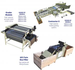 The company is a one-stop shop for every type and size of produce-handling equipment. Products include box and bag filling, size grading, soil and top removal systems, intake and even-flow hoppers, wet reception hoppers, destoning equipment barrel washers, roller driers, roller inspection tables, and storage bunker solutions.