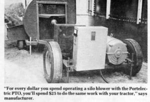 There's a cheaper way to fill silo, dry crops, pump liquid manure, grind feed or pump water for irrigation. It's Portalectric PTO, a "go anywhere" electric PTO drive unit that not only frees up your tractor for other jobs but costs a lot less to operate, according to Reuben Kottwitz, manufacturer.