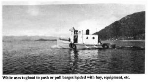White built a 25 ft., 9 in. long tugboat, nicknamed "Jezabelle", four years ago. His ranch is along the Clark Fork river just above Lake Pend Oreille. Some of his land, as well as a couple of islands where the river meets a lake, are accessible only by water.