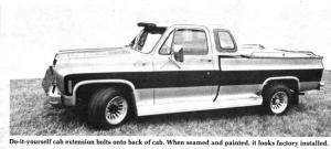 The most noticeable feature of the Super Truck, decked out by Truck Supply, a division of the Hemco Corp., Independence, Mo., to display the firm's complete line of accessories for pickups, is the cab extension. It bolts onto the back of the cab and provides additional storage space. Available in kit form to fit most makes and models, it sells for $229. "The existing rear window is moved back and installed in the cab extension. This makes the pickup very adaptable for travel because of the added cab space, and also dresses up appearance of the truck," explains a spokesman for Truck Supply.