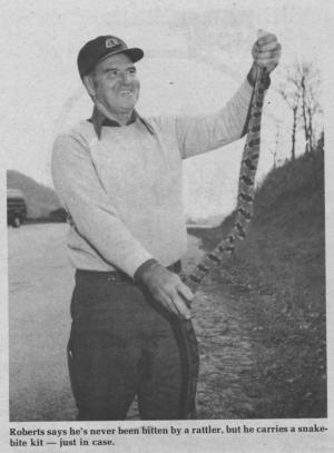 Wisconsin farmer Woody Roberts, of Barneveld, moved onto a rattlesnake infested 500 acre farm 54 years ago. The reptiles came down from the hills and were found around the farm buildings and even lurking beneath the leaves of garden vegetables.