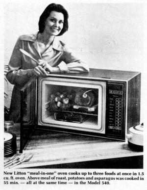 New Meal-In-One Microwave Ovens FARM HOME Kitchen 1-6-25 "The barrier of one-dish-at-a-time cooking in microwave ovens has been broken," said William George, vice president, in recently announcing the new Litton 500 Series countertop microwave ovens, first on the market capable of cooki ng a complete three-course meal at one time.