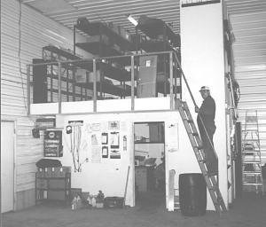 They built four 32-in. wide heavy-duty shelving units designed to hold a variety of parts. Access is gained by climbing a ladder to the loft. They hold parts for combines and tractors.