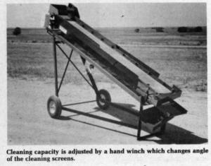 Capacity, depending on the crop, is up to 200 bu. an hour and can be varied by adjusting the angle of the cleaner via a hand winch. The steeper the cleaner's set, the faster seed goes through, but the less thorough the cleaning job.