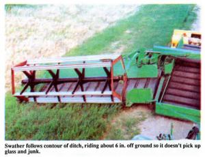 "Our swather follows the contour of the ditch. It rides about 6 in. off the ground so it doesn't pick up glass and junk. We can lift it up over posts and road approaches.