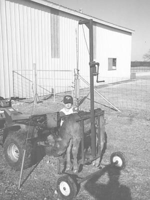 The cart has a 6 1/2-ft. removable mast with manual winch for weighing calves in the pasture. A weighing sling, fitted with gar-den hose-covered chains and hooks in each end, has several holes for the hooks in or-der to adjust balance on the weigh bar.
