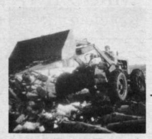 He mounted a powerful cable winch on front of the loader. "The cable drum is driven by a chain drive from the engine driveshaft through a small car transmission," he explains.