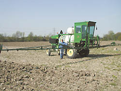 "I use it mostly to spray pre and post emergence herbicides on soybeans," says Sacco. "What I really like is that the boom is located in front of me so I can see what's going on instead of having to look back all the time. I use the controls for the corn header to raise the boom up or down.