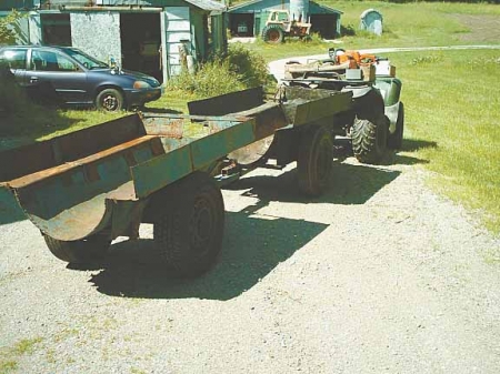 Kawasaki Prairie 400 4-wheeler to pull both trailers fully loaded, and it