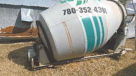 Marty Winchell uses an old concrete mixer to compost dead animals on his mixed livestock farm in Alberta. The concrete mixer makes a great composter for several reasons but one of the most important is that the steel exterior and raised opening keeps wolves, coyotes, bears and cougars out.