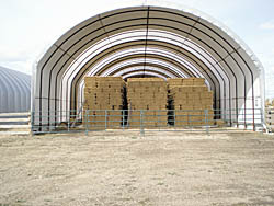 "End walls for hay sheds are often made with slatted wood so air can still circulate, but for other purposes, the ends are closed in completely with either tarp, tin or wood," Klys says. "They can also be framed for overhead doors."