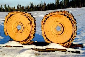 With the unique wheels in his posession Lyons set out to learn more about them. He learned that Royal Riblet, a Washington farmer, submitted drawings for the idea in 1913 and was granted a patent in 1915. “The complex system had 16 two-foot wide tread plates that could surround any size wheel, riding on complex rocker arms that when the vehicle was moving, created the loud clamor that I heard as a kid at the fair,” Lyons says. Riblet envisioned the system would provide traction for wheeled vehicles without the expense of buying a tracked machine.
