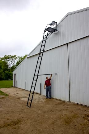 “I used to go out with a portable climber type of tree stand,” he recalls. “But it wouldn’t work on trees with a bunch of limbs on it. I wanted something that would work on any tree.”