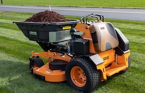 The Mower Mule is an attachment to transport and dump up to 300 lbs. of material using a commercial walk-behind or stand-up mower.