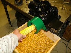 “I didn’t know this, but corn cob centers all measure about 1 1/4 in. no matter the cobs outside circumference,” Burrington says. “I spaced the cutters that far apart to knock the kernels off without waste or getting the cobs stuck.”