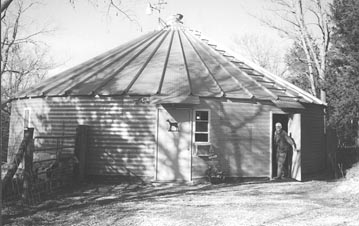 "I spent very little to build it, including the cost of the new roof, and couldn't be happier with it," says Cranston. "The bin had stood empty for 15 years and we were still paying taxes on it which I thought was a waste of money. We also considered converting the bin into a 3-story house or a cattle barn equipped with moveable panels. Grain bins make ideal low-cost livestock barns because they're built with tough heavy gauge steel and have a natural 'upward-flow' circulation pattern. In almost any farm paper you can find ads for grain bins that sell for very reasonable prices. If you want more capacity you could place three bins in a circle and use a central aisle to connect them together for access to all buildings.